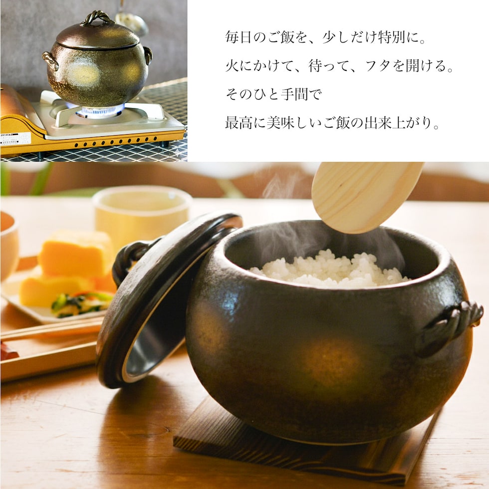 直火専用ご飯鍋 丸型 釉掛 レンジ対応 3合サイズ 鍋敷き付き ( ご飯鍋 万能鍋 ごはん 土鍋ご飯 おひつ 萬古焼 結婚 出産 内祝い 引き出物 )
