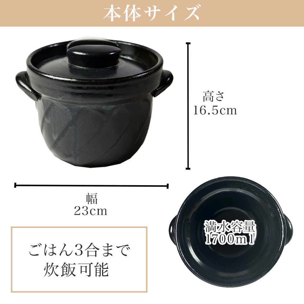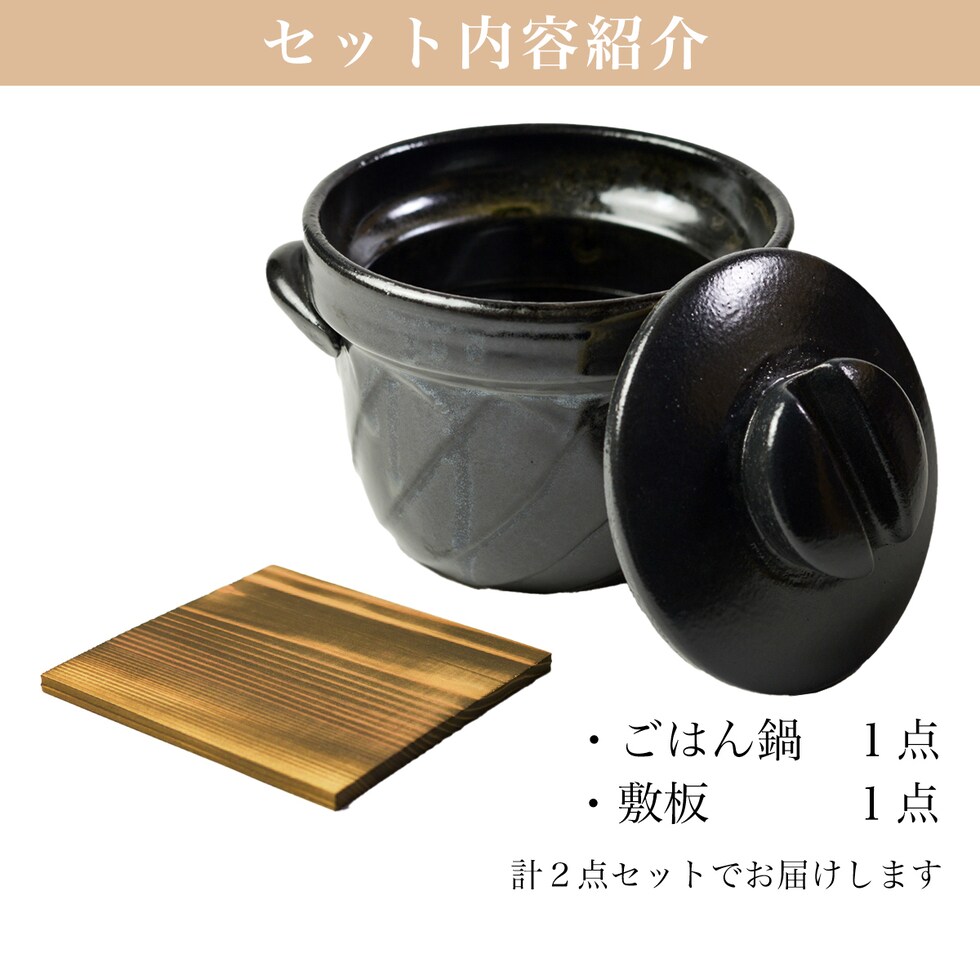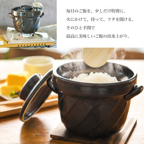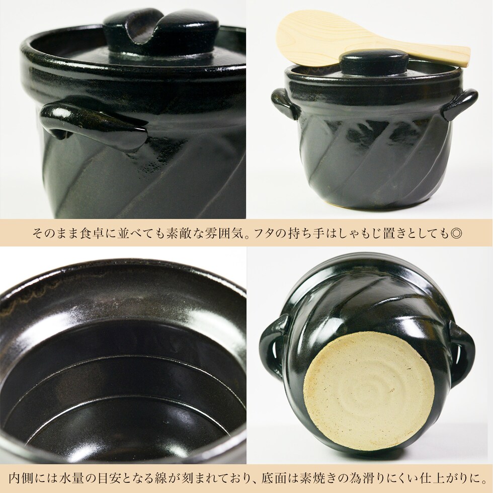 直火専用ご飯鍋 ねじれ 黒釉 レンジ対応 3合サイズ 鍋敷き付き ( ご飯鍋 万能鍋 ごはん 土鍋ご飯 おひつ 萬古焼 結婚 出産 内祝い 引き出物 )