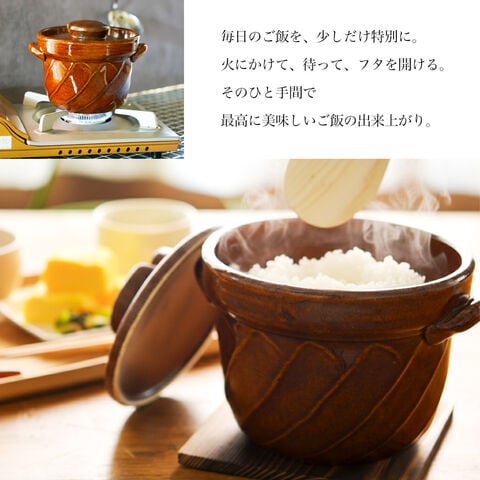 直火専用ご飯鍋 ねじれ 飴釉 レンジ対応 3合サイズ 鍋敷き付き ( ご飯鍋 万能鍋 ごはん 土鍋ご飯 おひつ 萬古焼 結婚 出産 内祝い 引き出物 )