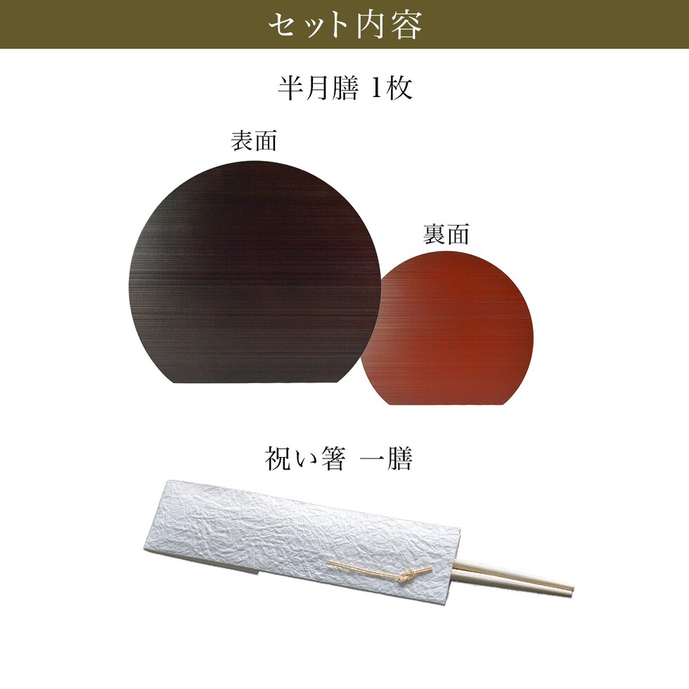 【越前漆器】 半月膳・祝い箸 一膳セット リバーシブルマット 黒 赤 ヘギ目 39.5cm