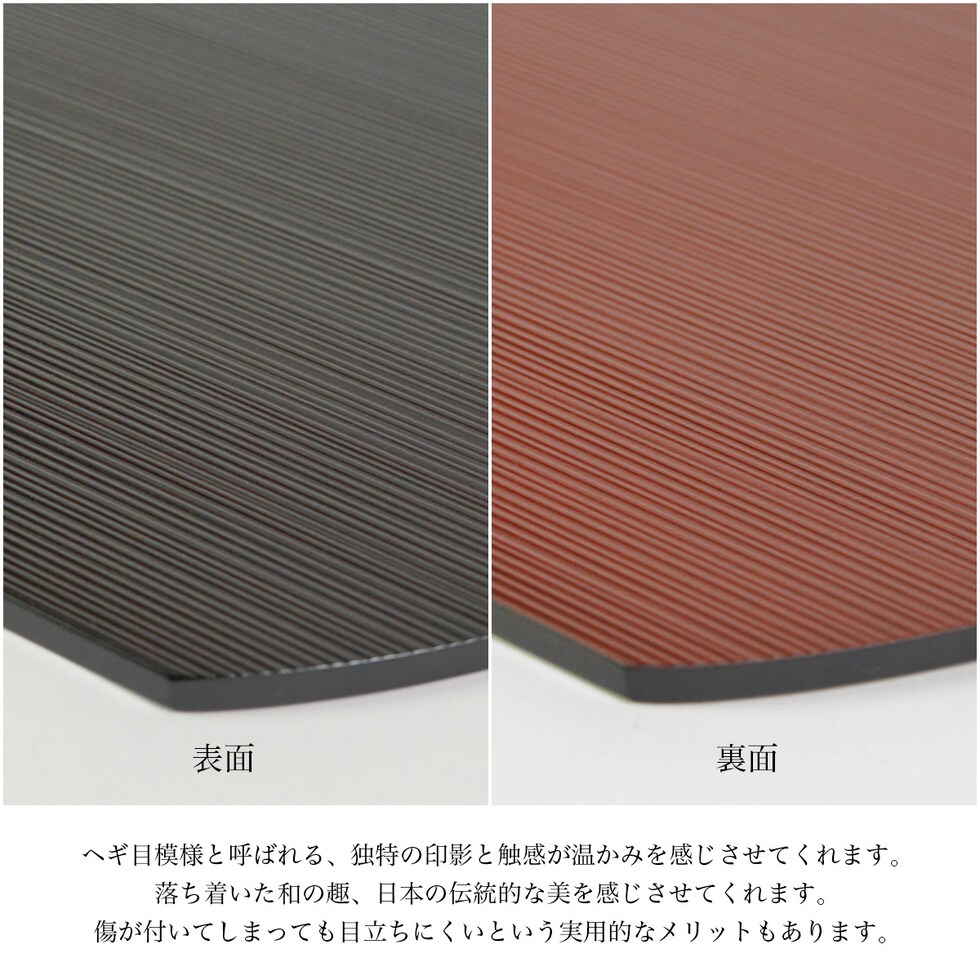 半月膳・祝い箸 一膳セット リバーシブルマット 黒 赤 ヘギ目 39.5cm ( ランチョンマット リバーシブル 半月盆 祝膳 トレイ お盆 半月型 会席膳 業務用 両面 )