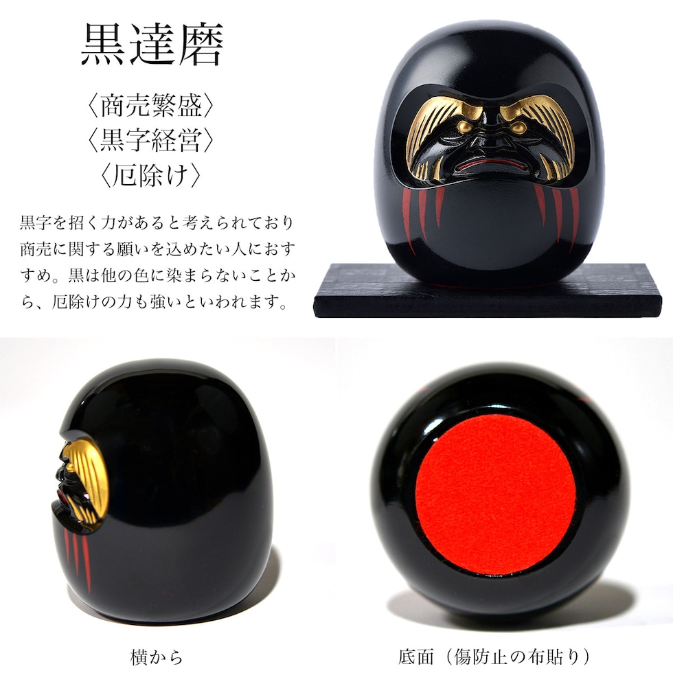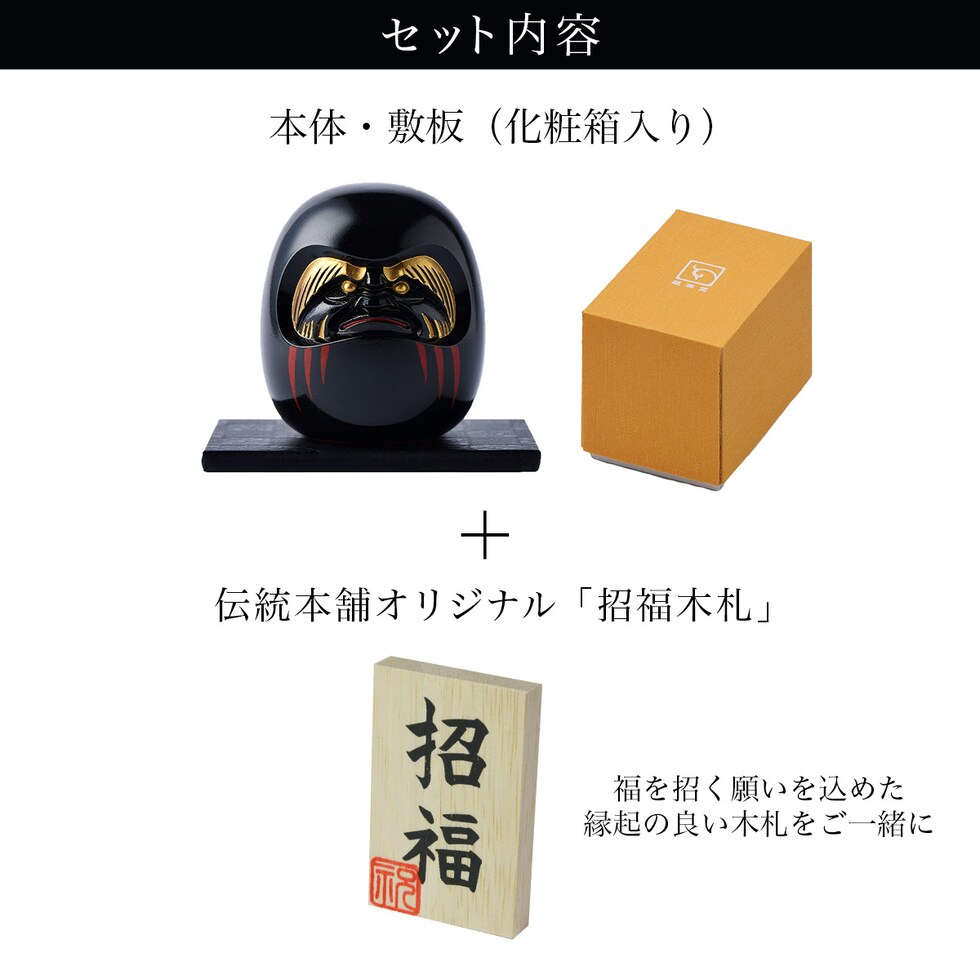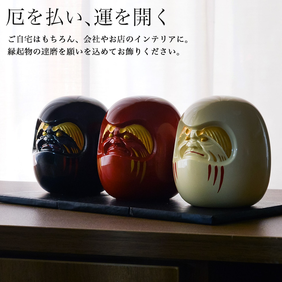 開運厄除 達磨 黒漆・赤漆・白漆 選べる3色 オリジナル招福木札付き ( 置物 黒字 縁起だるま 幸運 商売繁盛 風水 魔除け 厄除け 縁起物 インテリア モダン )