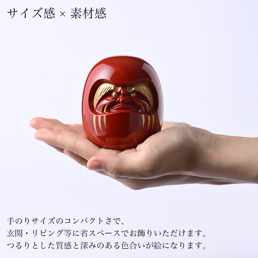 達磨と招福木札が組み合わさった縁起の良いアイテムです。漆で絵や模様を描き、金や銀の蒔絵粉を散らして付着させる蒔絵という技法を使い、職人の手仕事で一品一品表情に光彩を添えました。 重厚感がありながらモダンなデザインで、省スペースに飾れる優れもの。ご家庭のリビングや玄関、会社や施設のインテリアにもおすすめです。 お正月などのハレの日に飾ったり、大切な方への贈り物にも。