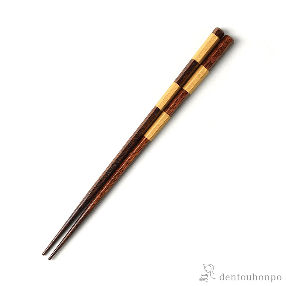 【越前漆器】 箸 六角 拭漆市松 金 23cm