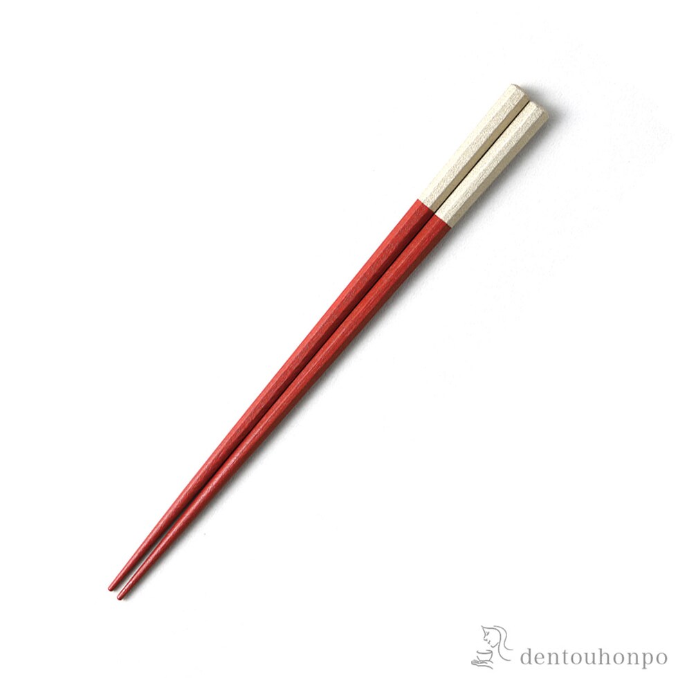 【越前漆器】 箸 八角 朱拭漆 銀帯 22cm
