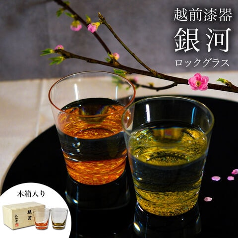 【越前漆器】 ロックグラス 銀河 ペア 木箱入り