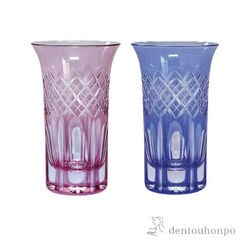 【江戸切子 田島硝子】 魚子切子 一口ビール ペア 江戸紫切子
