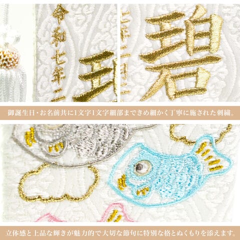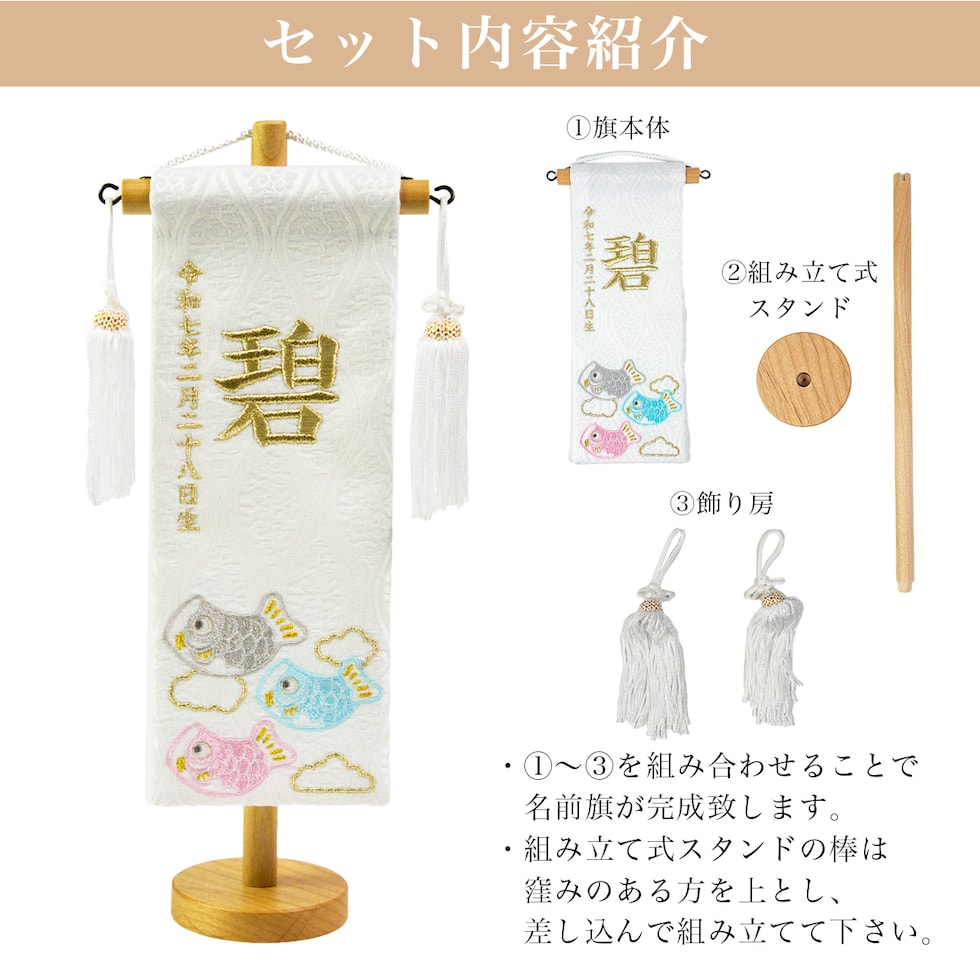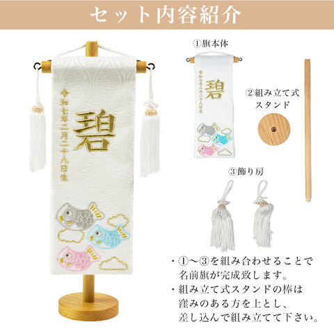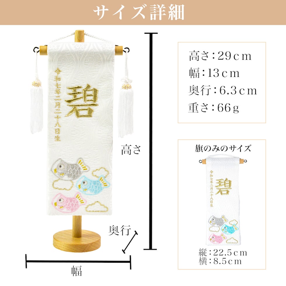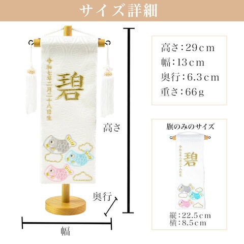【久月】 名前旗 天白鯉白 高さ29cm 刺繍名入れ 生年月日入り