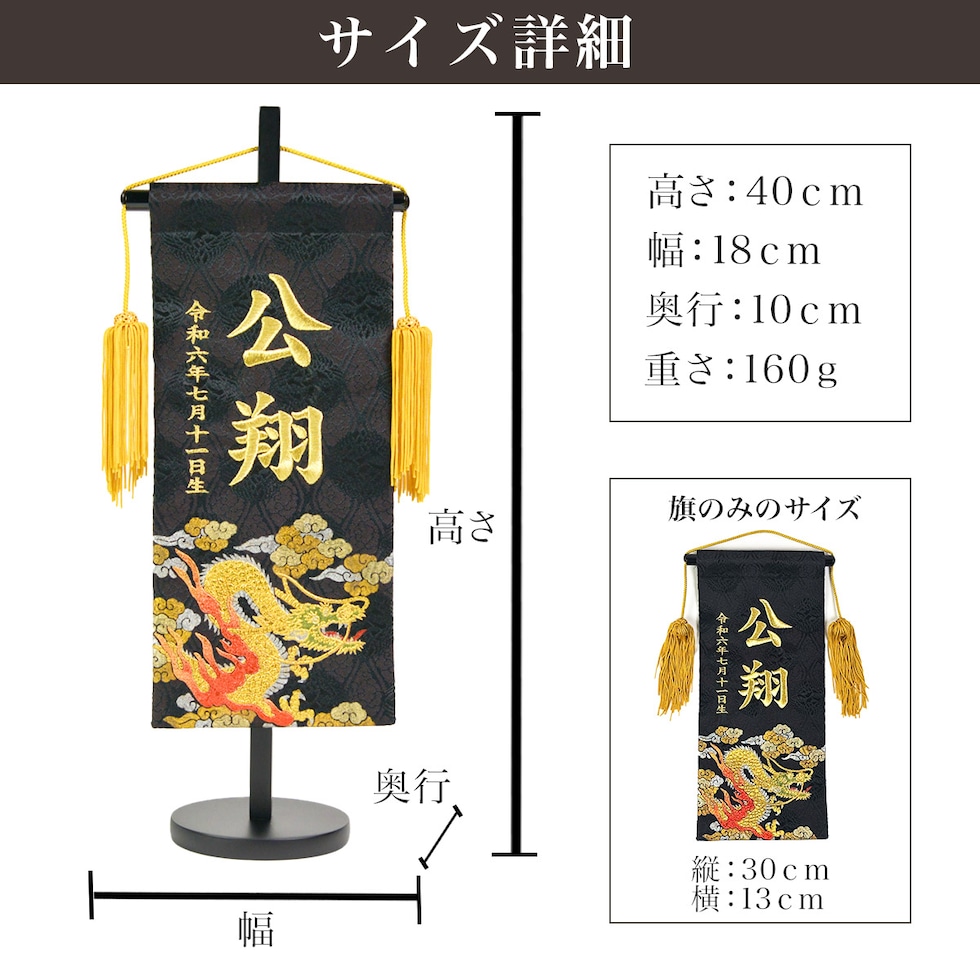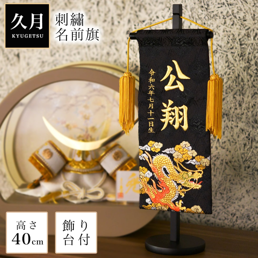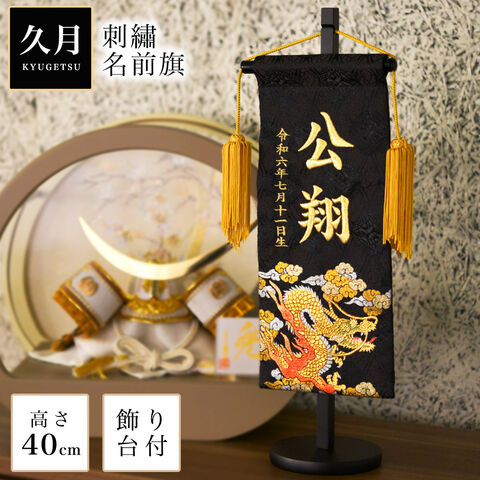【久月】 名前旗 金彩龍30 高さ40cm 刺繍名入れ 生年月日入り