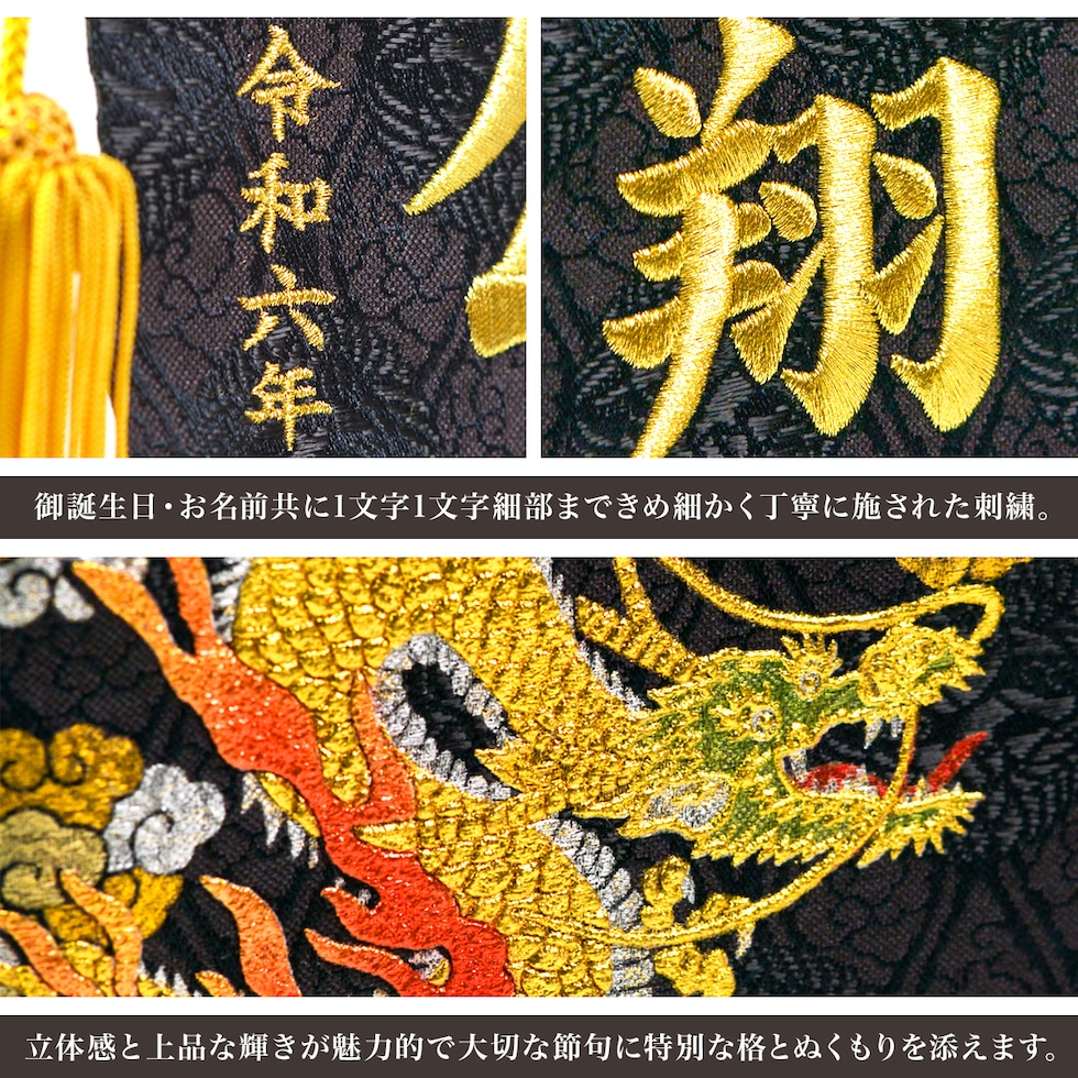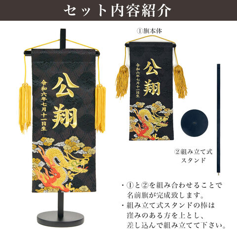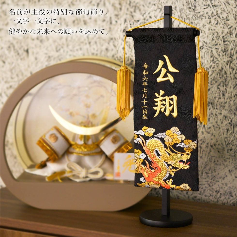 名前旗 金彩龍 高さ40cm 刺繍名入れ 生年月日入り ( 兜 武者人形 初節句 名入れ 人気 久月 端午の節句 こどもの日 プレゼント お祝い お返し お礼 令和 )