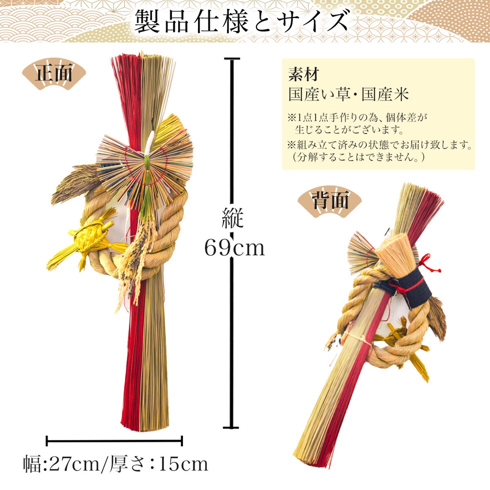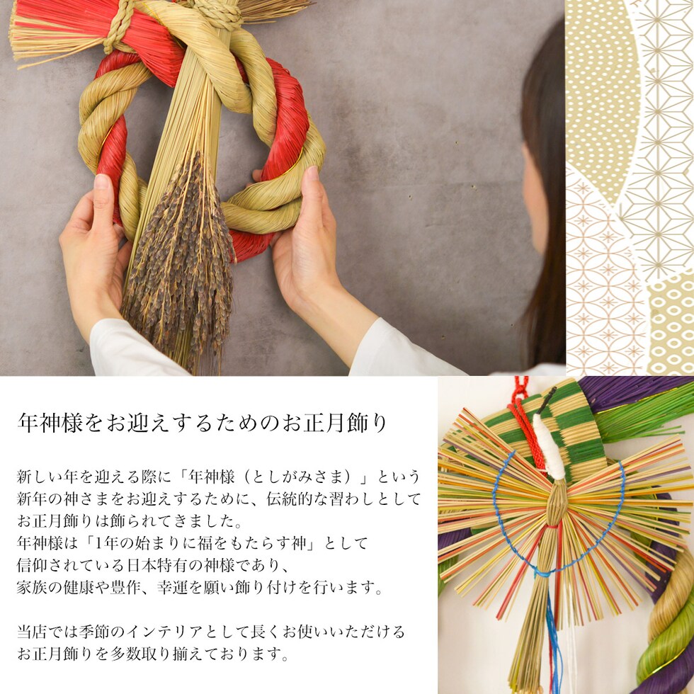 い草 しめ縄飾り 鶴亀付 ( お正月 新年 しめ飾り 正月飾り 新年 インテリア モダン 季節 玄関 福岡県 新築 新年 開業 寄進 奉納 開店 事務所移転 開業 )