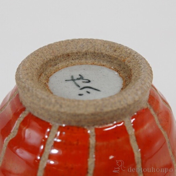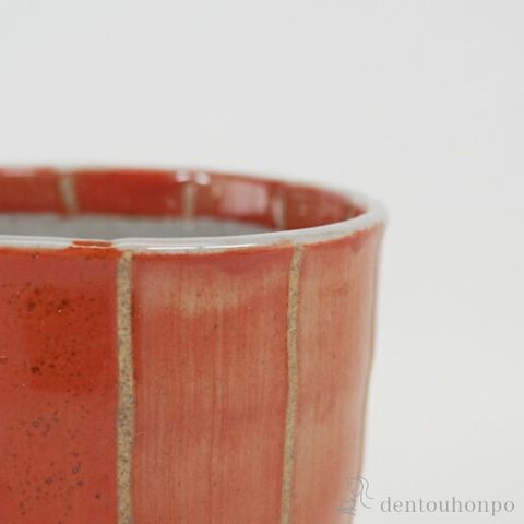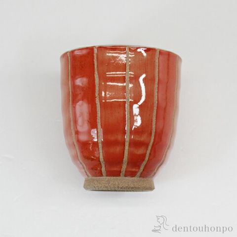 少しずつ違う赤色の色彩が綺麗な湯呑。土物のあたたかみもあり、使いながらほっと癒してくれます。お揃いのお茶碗もご用意しています。青と赤の2色展開です。