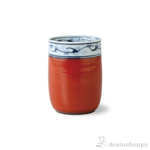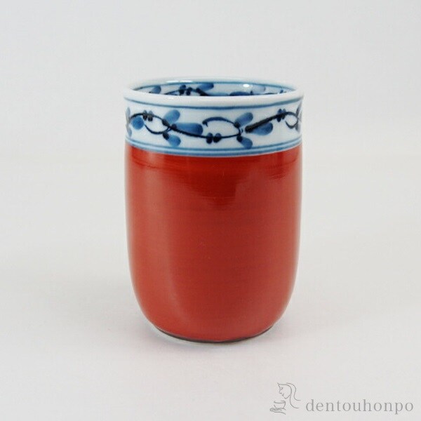 磁器製なので扱いやすく、電子レンジでも使用できる湯呑。 お茶の色も味のうち。色も楽しめるよう、内側は白色でお茶の色が見やすいです。赤と青の2色展開。同柄のお茶碗も販売中です。