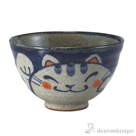 【波佐見焼】 手描き猫 飯碗 青 大 3個セット