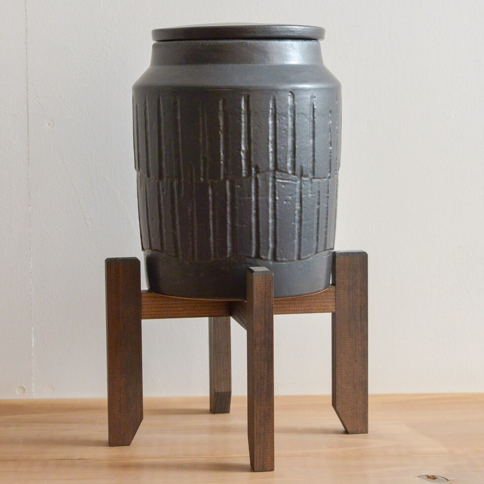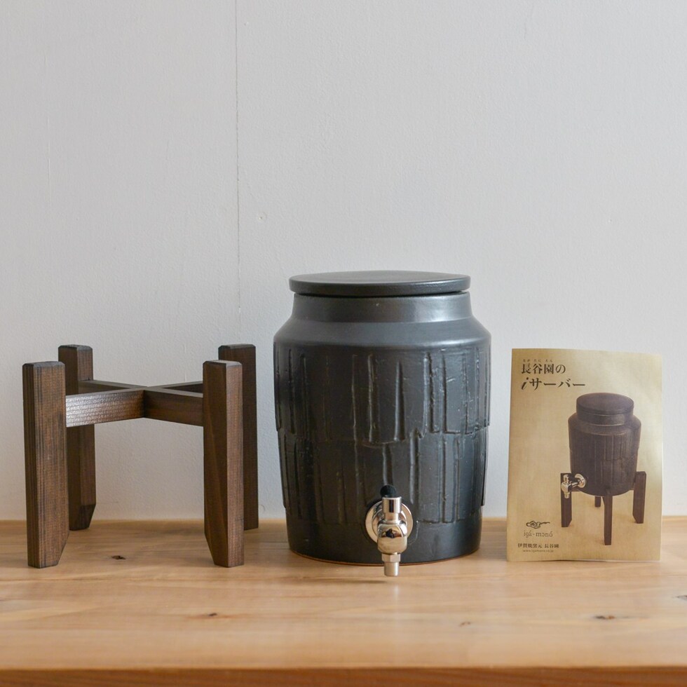 【伊賀焼 長谷園】 iサーバー 焼酎サーバー 黒釉 木製台付