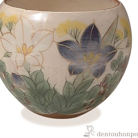華やかな色彩で季節の花を描いたお茶呑茶碗です。