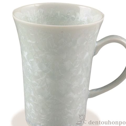 花のように咲いた白い結晶が上品なマグカップです。贈り物としても喜ばれます。器の表面に花が咲いたような美しい器で、2つとして同じものができないのも特徴のひとつです。様々な結晶の形を楽んでいただける商品です。