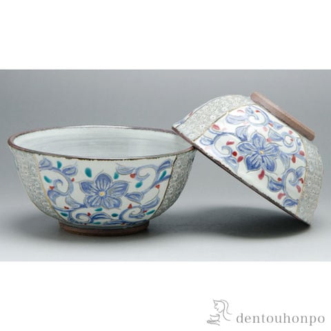 【清水焼 京焼 清水焼 京焼】 組飯碗 三島唐草