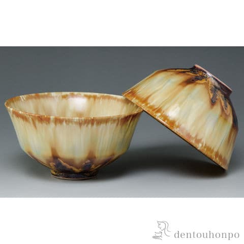 【清水焼 京焼 清水焼 京焼】 組飯碗 釉流彩(茶)