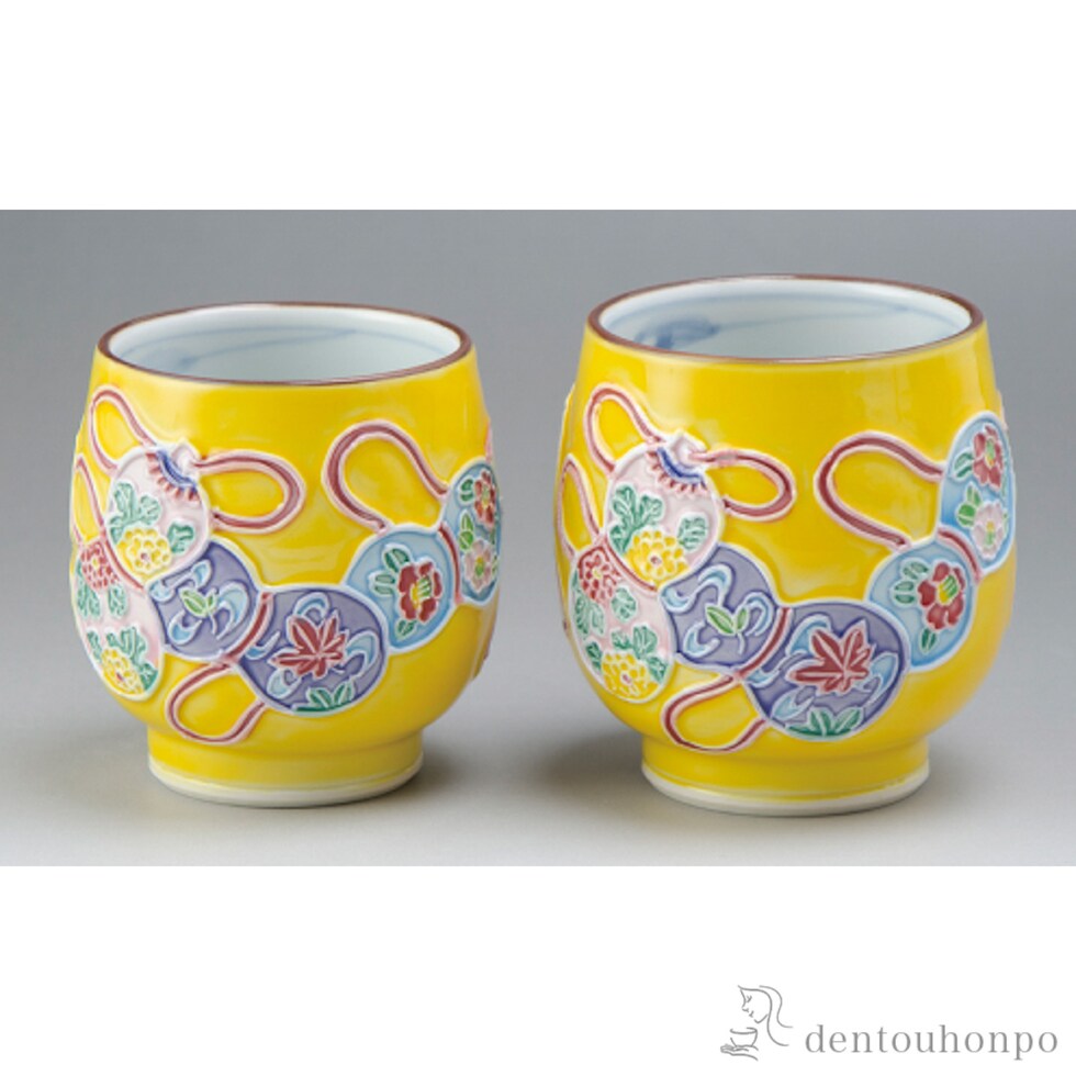 【清水焼 京焼】 黄交趾六瓢 組湯呑 ペア