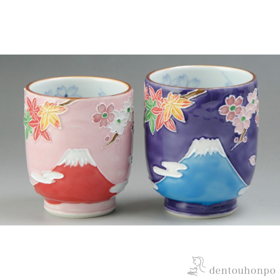 交趾富士景色 組湯呑 ペア ( 湯呑み 湯のみ セット 湯飲み おすすめ 清水焼 京焼 結婚 出産 内祝い 引き出物 金婚式 誕生日プレゼント 還暦祝い 古希 喜寿 )