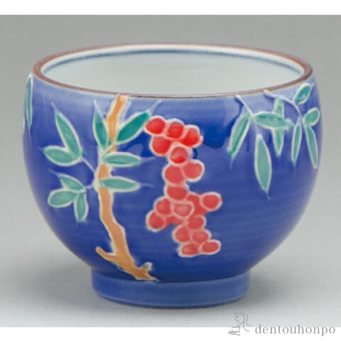 交趾花色 ぐい呑 南天 ( ぐいのみ 盃 酒器 猪口 日本酒 清水焼 京焼 結婚 出産 内祝い 引き出物 金婚式 誕生日プレゼント 還暦祝い 古希 喜寿 米寿 退職 )