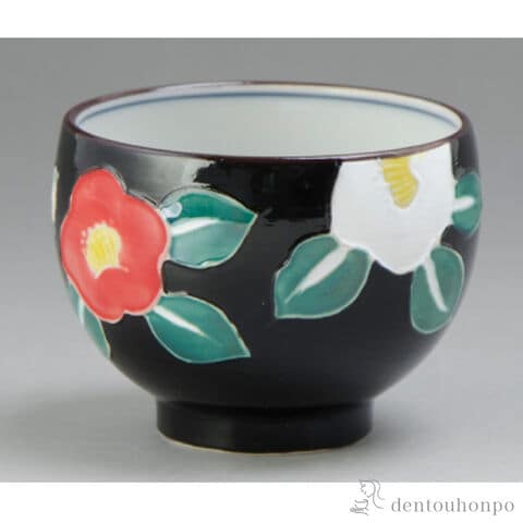交趾花色 ぐい呑 椿 ( ぐいのみ 盃 酒器 猪口 日本酒 清水焼 京焼 結婚 出産 内祝い 引き出物 金婚式 誕生日プレゼント 還暦祝い 古希 喜寿 米寿 退職 )