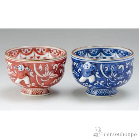 染赤花唐草 ペアぐい呑 ペアセット ( ぐいのみ 盃 酒器 猪口 日本酒 清水焼 京焼 結婚 出産 内祝い 引き出物 金婚式 誕生日プレゼント 還暦祝い 古希 喜寿 )