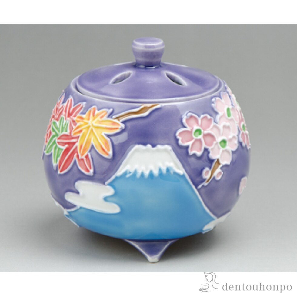 交趾富士景色 香炉 紫 ( お香 線香 リラックス 仏具 人気 清水焼 京焼 周年 創立 上場 竣工 上場 竣工 開店 事務所移転 開業 プレゼント お祝い お返し お礼 )