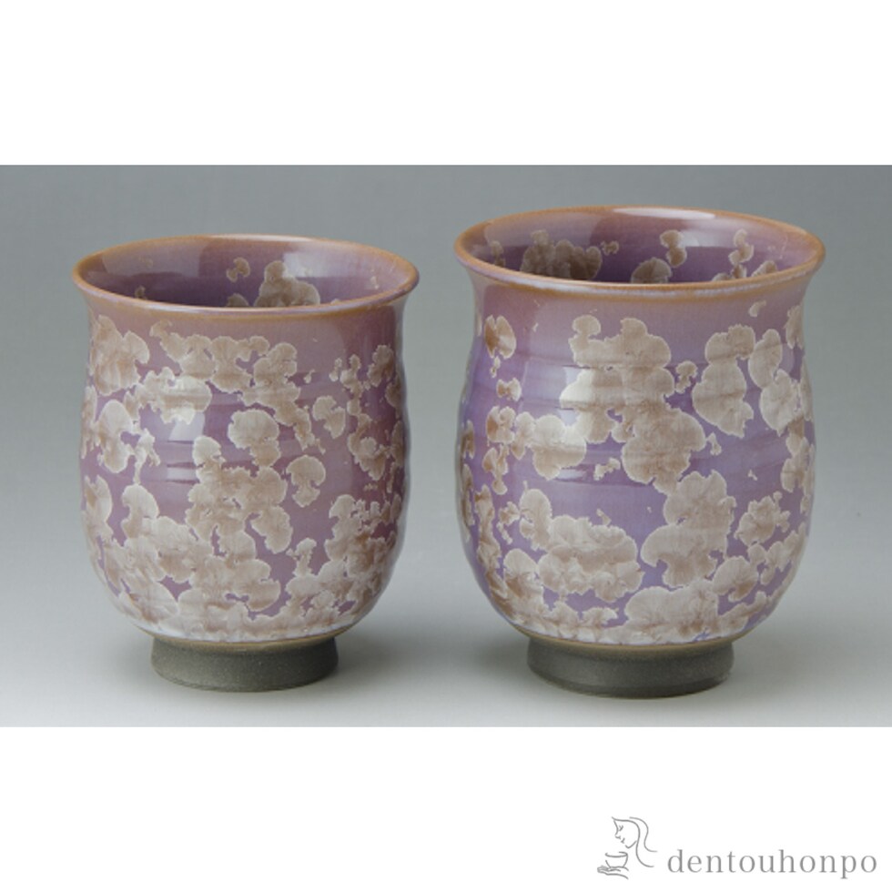 【清水焼 京焼】 花結晶 組湯呑 薄藤 ペアセット