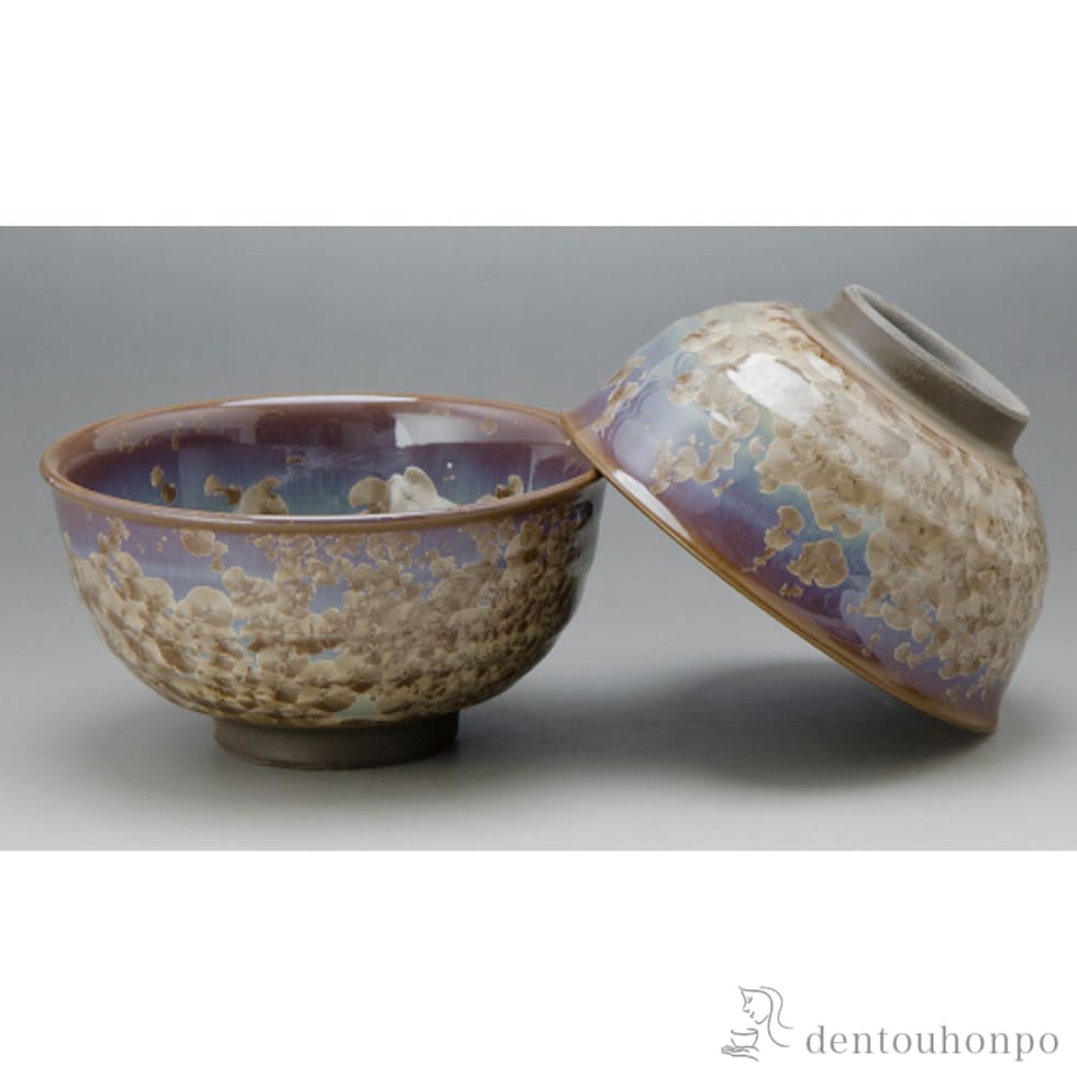 【清水焼 京焼】 花結晶 組飯碗 灰茶 ペアセット