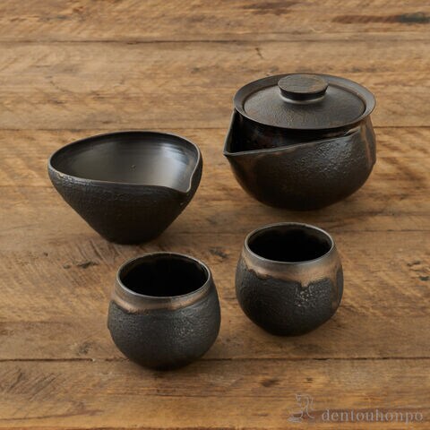 深みのあるさび色が美しいスタイリッシュな小茶器揃。職人技が光る軽い口当たりです。