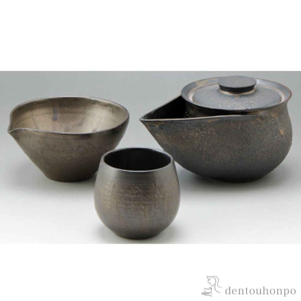 【清水焼 京焼】 宝瓶茶器揃 黒銹 大