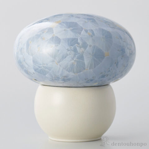落ち着いた色合いの結晶釉に彩られた手のひらサイズに収まる愛らしいキノコ型の香炉です。