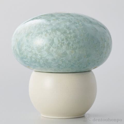 深みのある緑の結晶釉が魅力のキノコ型の香炉。シンプルながら唯一無二の存在感です。