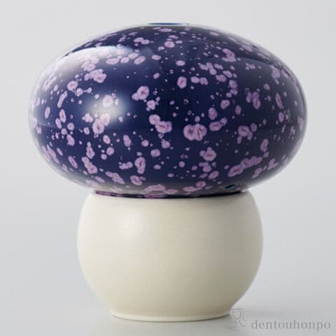 キノコ型のユニークなフォルムに神秘的な紫の釉薬が良く映える香炉です。インテリアのアクセントととしても最適です。