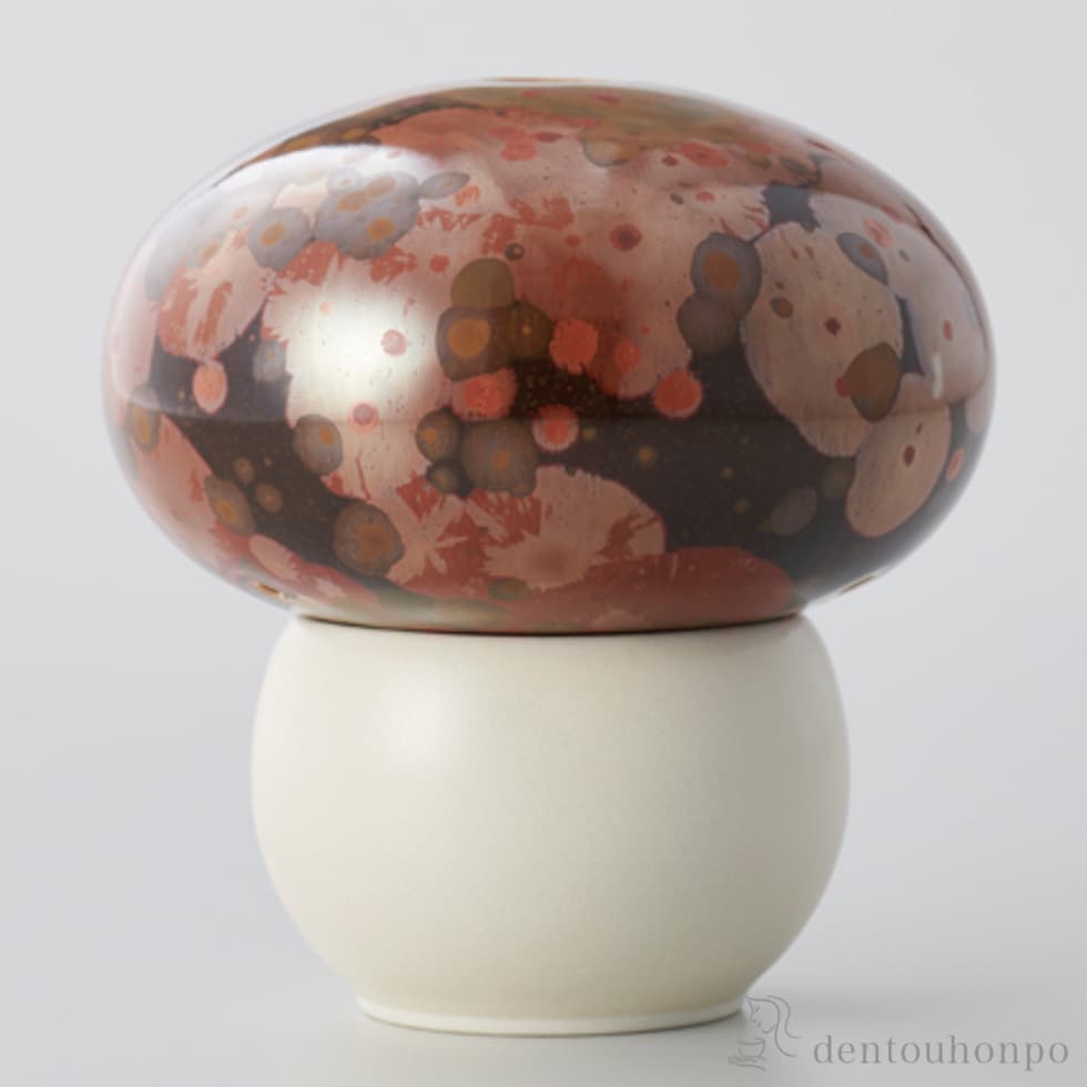 キノコ型の器体に幻想的な茶色の色調が美しい香炉。艶やかな結晶が様々な表情を見せてくれます。