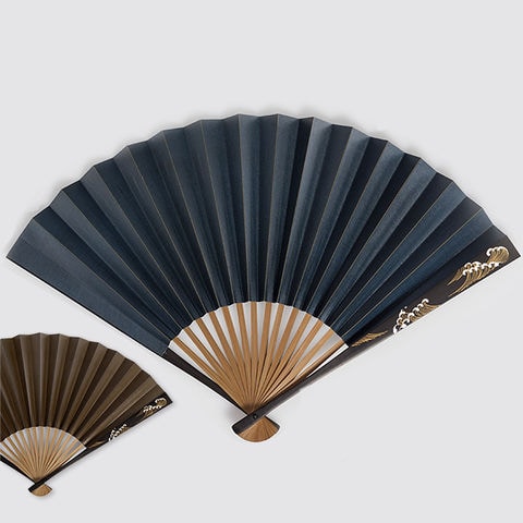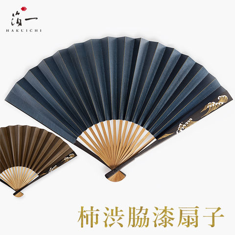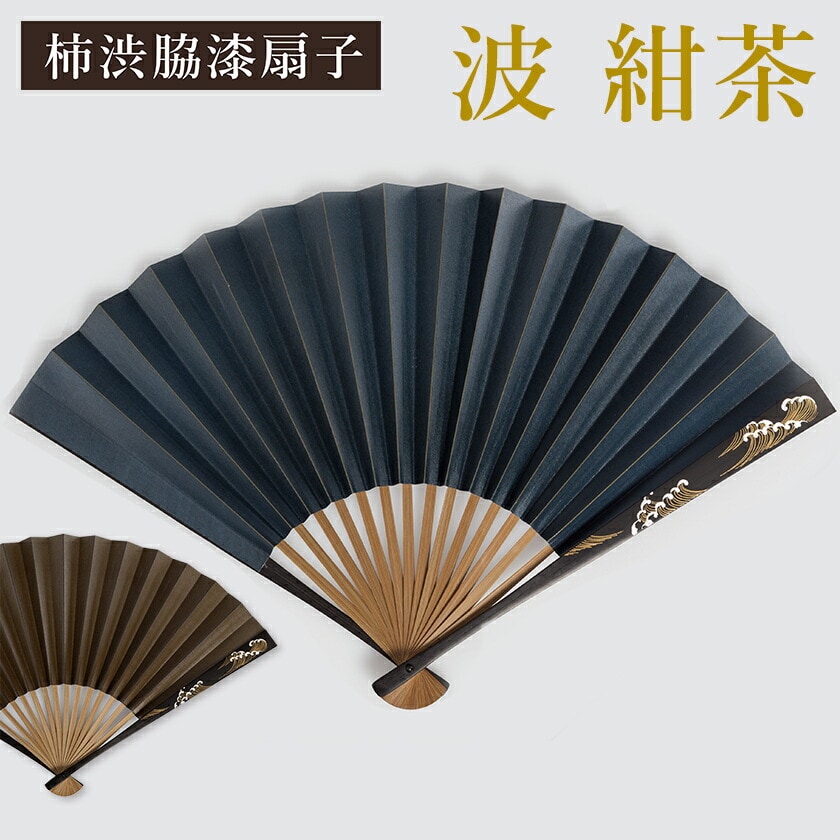 柿渋脇漆扇子 波 紺茶 ( 箔一 母の日 父の日 プレゼント 初任給 実用的 おしゃれ ブランド せんす 和柄 うちわ メンズ 金沢金箔 結婚 出産 内祝い )