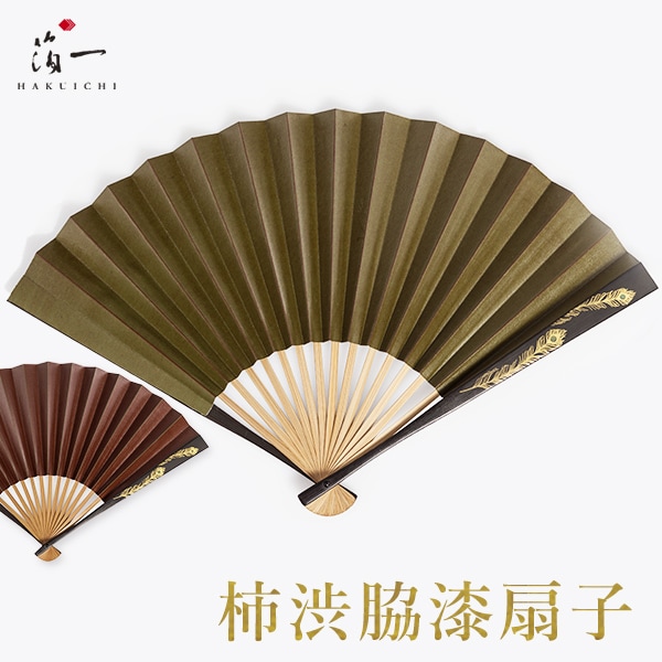 「柿渋脇漆扇子」は、見た目の洗練さはもちろん、実用性が高く、使うほどに味わい深くなる扇子です。島根の「真竹」に土佐の「和紙」。扇子面には、平安時代より伝わる「柿渋」を丹念に重ね塗りし、柿渋ならではの美しい光沢が特徴です。また、持ちて部分の竹軸には、箔蒔絵を施し、見た目の美しさにもこだわりました。純国産の素材と、昔ながらの技法で作られた手作りを極めた一品です。