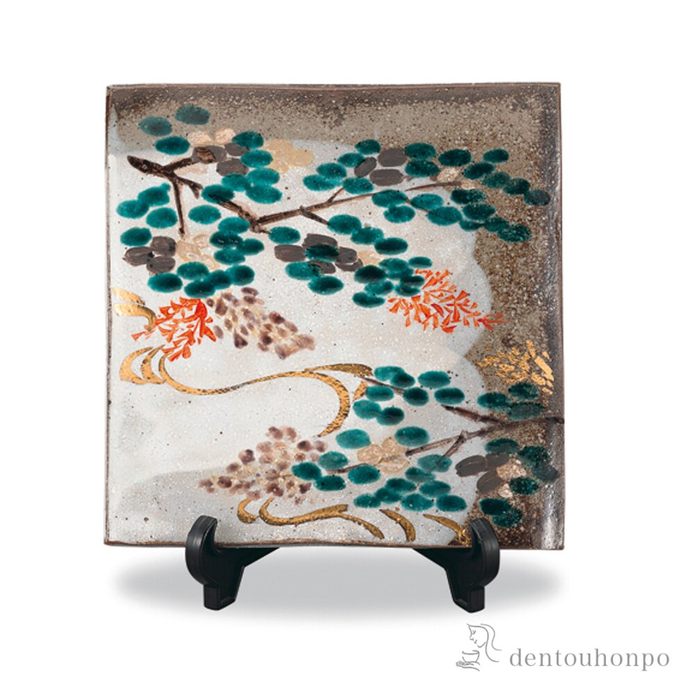 飾皿 流水萩 9号 皿立付 ( 木箱名入れ有料 木札名入れ有料 置物 飾皿 スタンド 絵皿 贈り物 九谷焼 結婚 出産 内祝い 引き出物 金婚式 誕生日プレゼント )