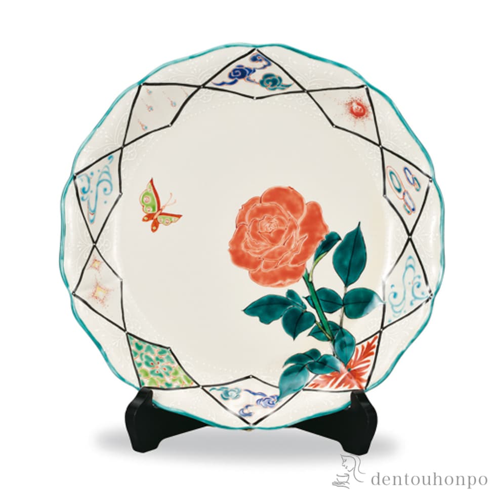 飾皿 ばら 10号 皿立付 ( 木箱名入れ有料 木札名入れ有料 置物 飾皿 スタンド 絵皿 贈り物 九谷焼 結婚 出産 内祝い 引き出物 金婚式 )
