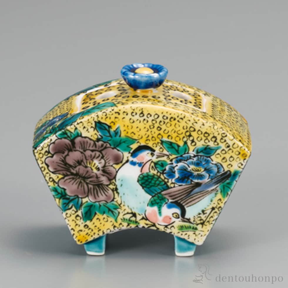 【九谷焼】 香炉 吉田屋風花鳥 2.5号
