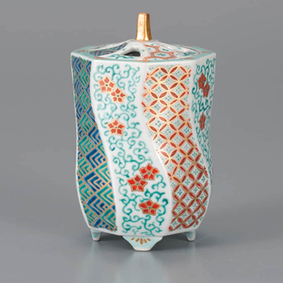 【九谷焼】 捻り香炉 仁清風割取唐草小紋 4.3号