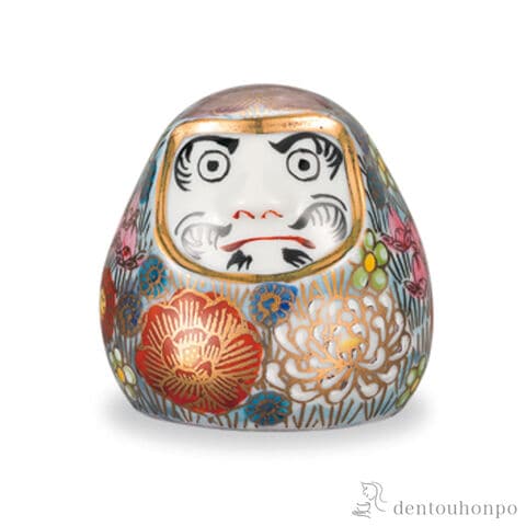 置物 ダルマ 花詰 ブルー ( 置物 幸運 風水 縁起物 人気 九谷焼 結婚 出産 内祝い 引き出物 金婚式 誕生日プレゼント 還暦祝い 古希 喜寿 米寿 退職 )