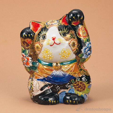 【九谷焼】 福招き猫 盛吉祥鶴亀 8.8号
