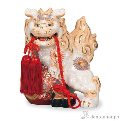 【九谷焼】 小槌獅子 白盛 6号