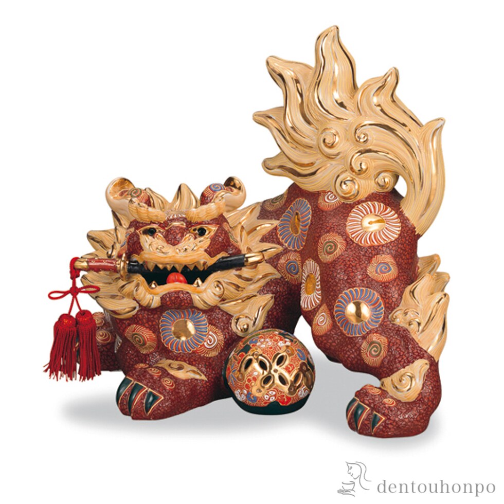 護宝剣獅子 盛 15号 ( 木札名入れ有料 置物 玄関 受付 風水 幸運 九谷焼 結婚 出産 内祝い 引き出物 金婚式 誕生日プレゼント 還暦祝い 古希 喜寿 米寿 退職 )