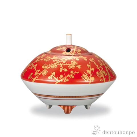 香炉 金襴手梅花文 4号 ( 木箱名入れ有料 お香 線香 リラックス 仏具 人気 九谷焼 周年 創立 上場 竣工 上場 竣工 開店 事務所移転 開業 プレゼント )