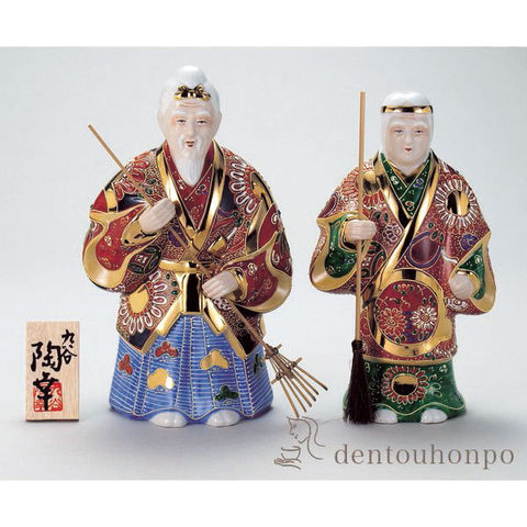 九谷焼 高砂 盛 7号 木札付 ( 木札名入れ有料 置物 玄関 受付 幸運 風水 九谷焼 結婚 出産 内祝い 引き出物 金婚式 誕生日プレゼント 還暦祝い 古希 )