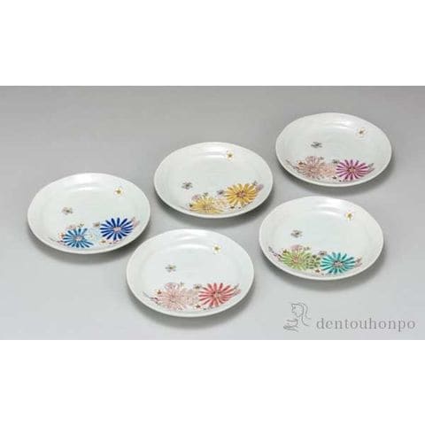 九谷焼 皿揃 華 5.2号 5枚セット ( 和食器セット お皿 揃える 食器 和食 九谷焼 結婚 出産 内祝い 引き出物 金婚式 誕生日プレゼント 還暦祝い 古希 )